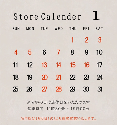 年内は12月29日(月)まで、年始は1月6日(火)より営業