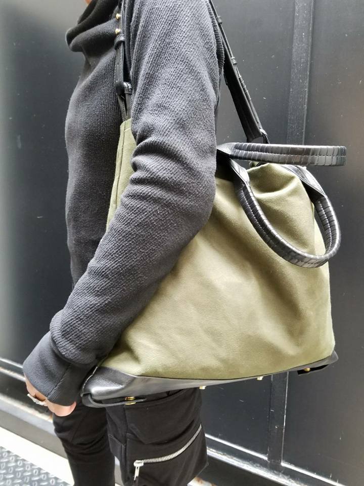 バッグは新作のコーネリアンタウラスの自衛隊のテントの幌で使われている頑丈な素材。