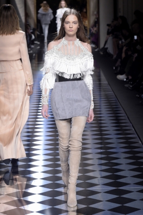 ▼アルベールエルバスの最後のエッセンスが詰まったプレコレクション。80年代のブリティッシュロックの王、デュランデュランが着ていたようなフリルやレースなどのミックステクチャー。